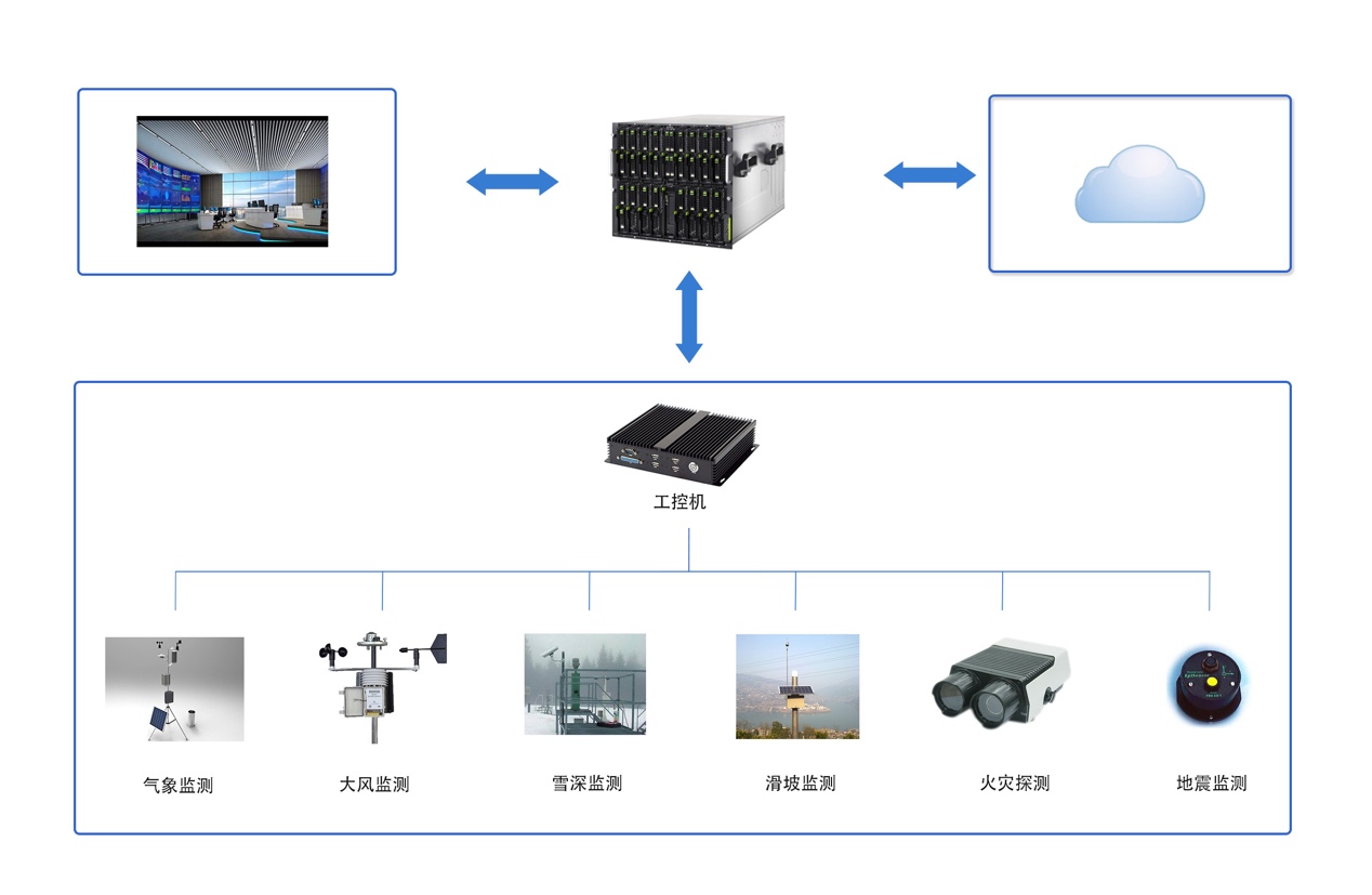 防災(zāi)減災(zāi)綜合監(jiān)測(cè)預(yù)警系統(tǒng)現(xiàn)場(chǎng)級(jí)處理單元由核心工控機(jī)和外圍傳感器設(shè)備組成,部署在水電站、核電站、機(jī)場(chǎng)、海港等關(guān)鍵場(chǎng)所,主要用于防災(zāi)數(shù)據(jù)監(jiān)測(cè)、數(shù)據(jù)分析和聯(lián)動(dòng)控制。現(xiàn)場(chǎng)級(jí)處理單元通過(guò)專用網(wǎng)絡(luò)與監(jiān)控中心進(jìn)行通信,實(shí)現(xiàn)自然災(zāi)害狀況實(shí)時(shí)監(jiān)測(cè),進(jìn)行災(zāi)害數(shù)據(jù)的收集、分析及處理,生成、傳輸并發(fā)布災(zāi)害警報(bào)信息和緊急處置信息,觸發(fā)相關(guān)防災(zāi)減災(zāi)系統(tǒng)聯(lián)動(dòng),進(jìn)而減小災(zāi)害對(duì)社會(huì)生產(chǎn)和人民生活造成的損失。